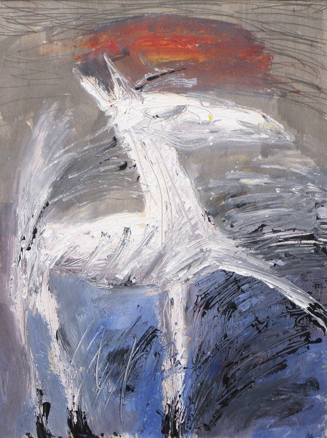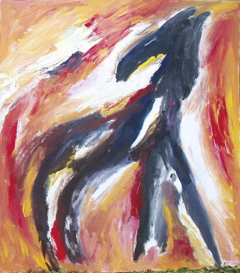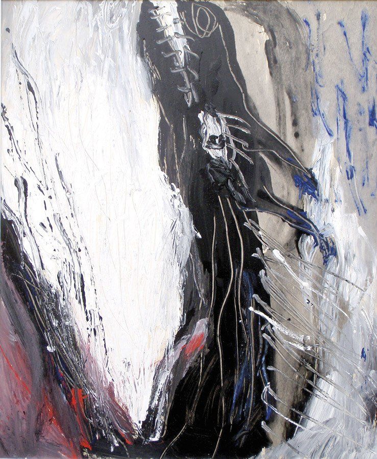 Kombinovaná technika, akryl, tempera, tužka na dřevě.